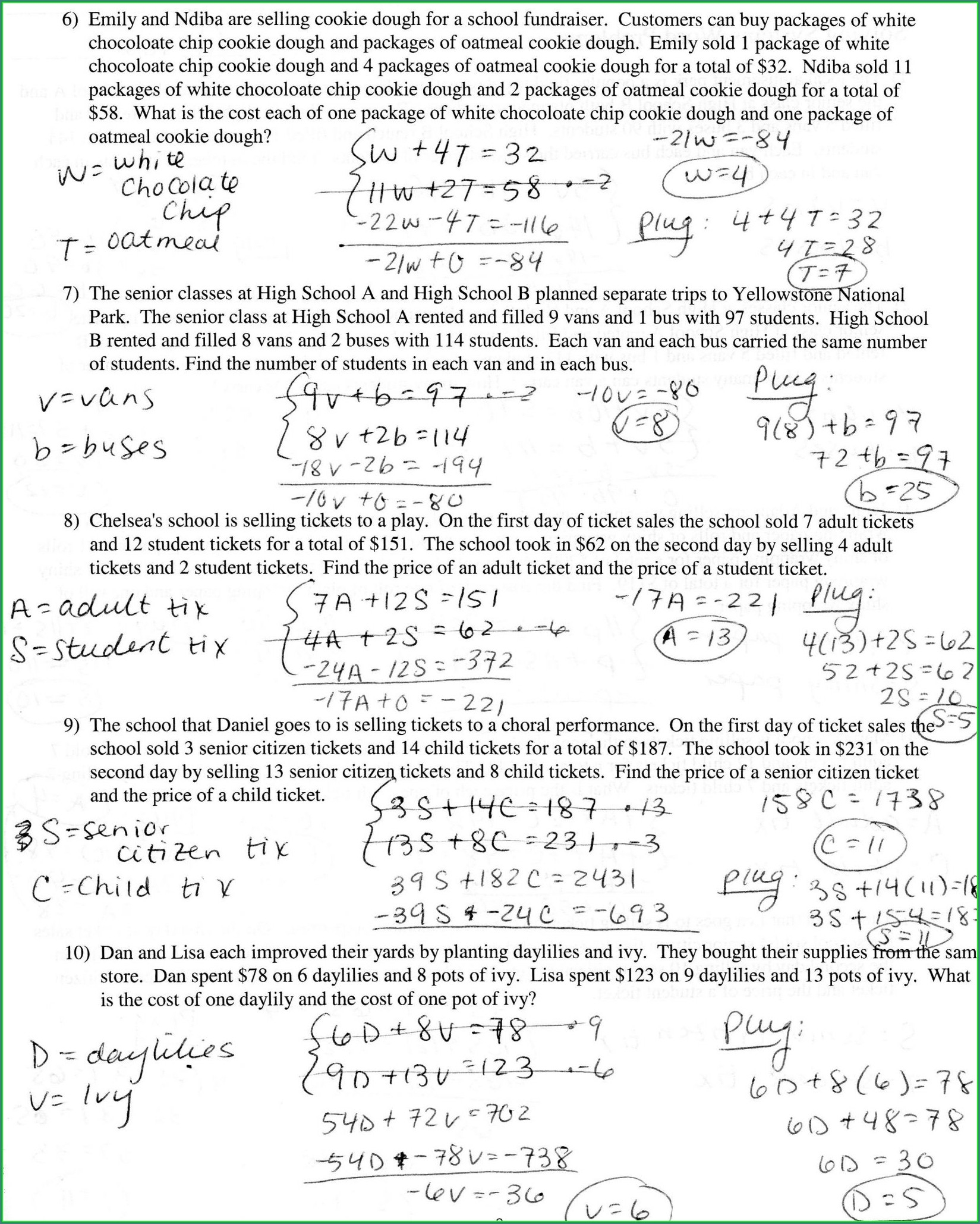 Systems Of Linear Equations Word Problems Worksheet Db excel