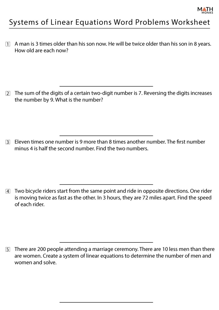By practicing with systems of linear equations word problems worksheets, students can gain valuable experience in applying algebraic concepts to real-world situations. These types of problems can help students develop critical thinking skills, improve their problem-solving abilities, and enhance their overall understanding of algebraic principles.