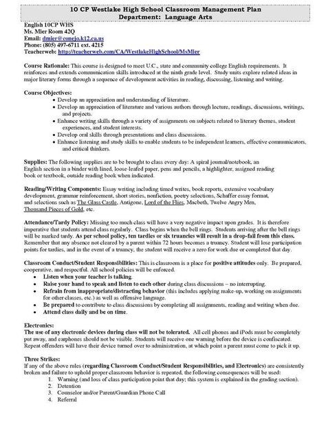 Classroom Management Plan Template Google Docs Word Apple Pages