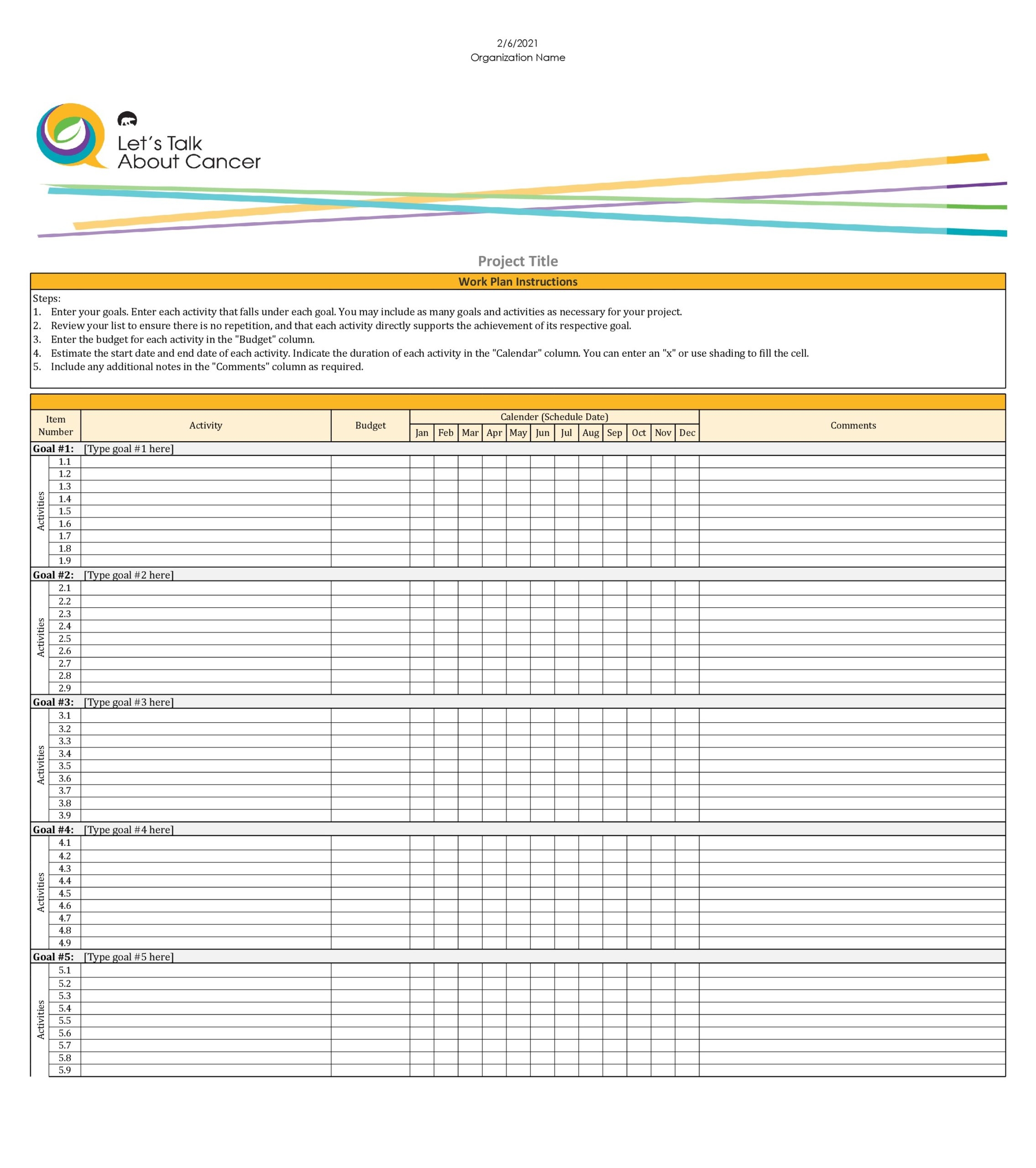 Download and Print template work plan Listed below