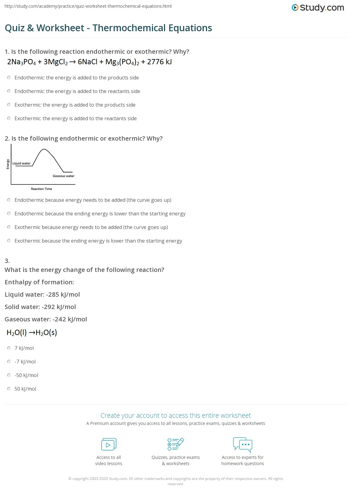 Quiz Worksheet Thermochemical Equations Study Equations Worksheets