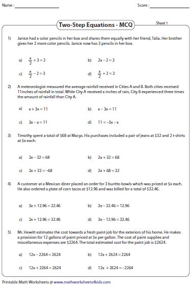 These types of word problems not only test students’ ability to solve equations but also their critical thinking and problem-solving skills. By practicing with a variety of worksheets, students can improve their proficiency in solving two-step equation word problems.