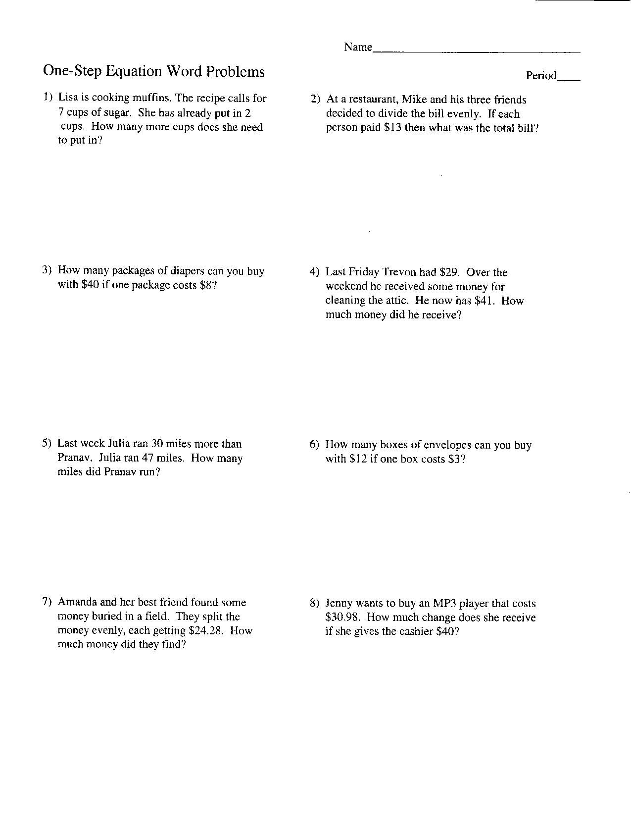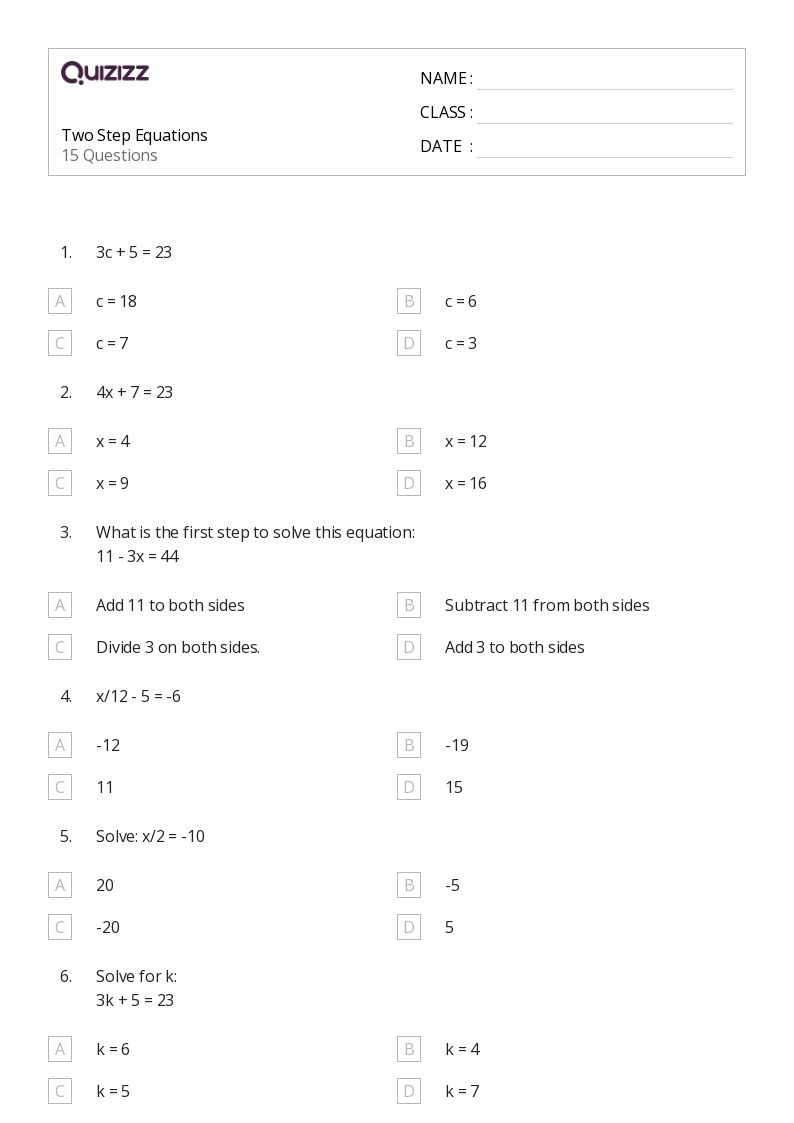 Two-step equation word problems can be challenging for students as they require not only solving for an unknown variable, but also translating a real-life situation into mathematical expressions. One way to practice and improve skills in this area is by using worksheets that provide a variety of word problems for students to solve.