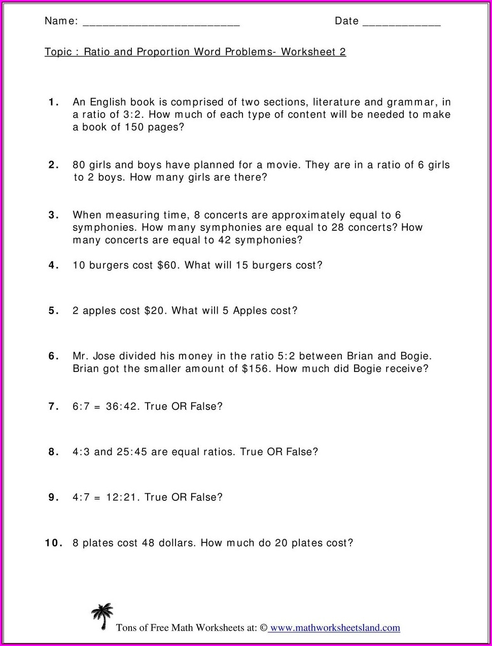 Linear Equations Word Problems Worksheet Pdf Printable PDF Template