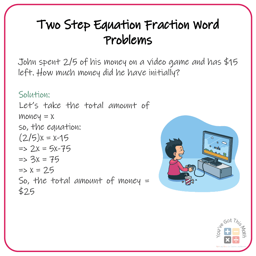 By working through these types of problems, students can develop their problem-solving skills and gain a better understanding of how to solve two-step equations word problems.