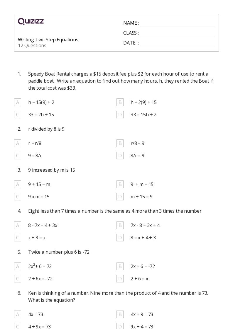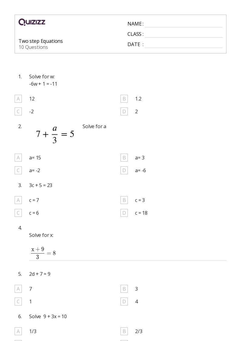 50 Two Step Equations Worksheets For 7th Grade On Quizizz Free