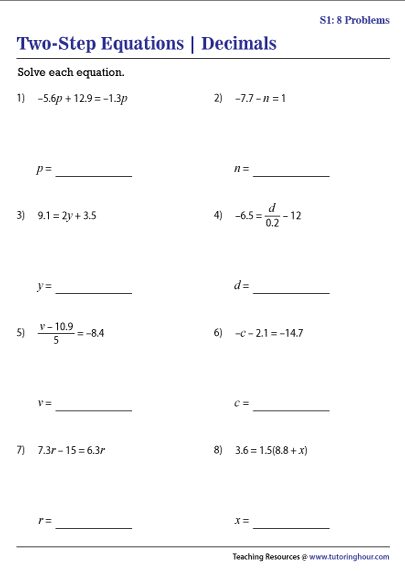Two-step equations worksheets PDF are readily available online and can be easily downloaded and printed for use in the classroom or at home. These worksheets typically include a variety of problems with step-by-step solutions, making it easier for students to check their work and identify any mistakes.