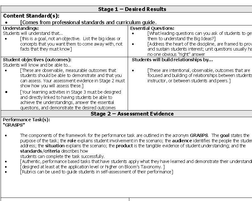 Ubd Lesson Plan Template Ubd Lesson Plan Template Popular Fillable Ubd