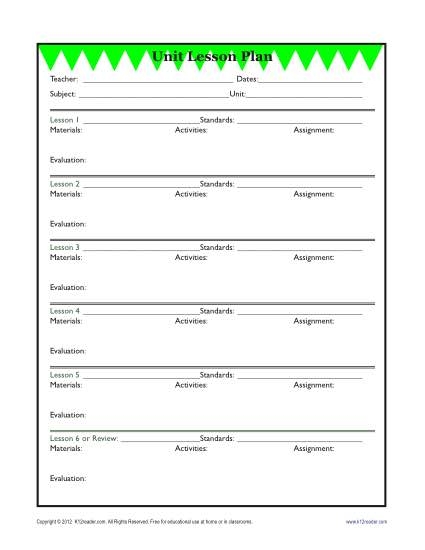 Download and Print unit plan template elementary Listed below