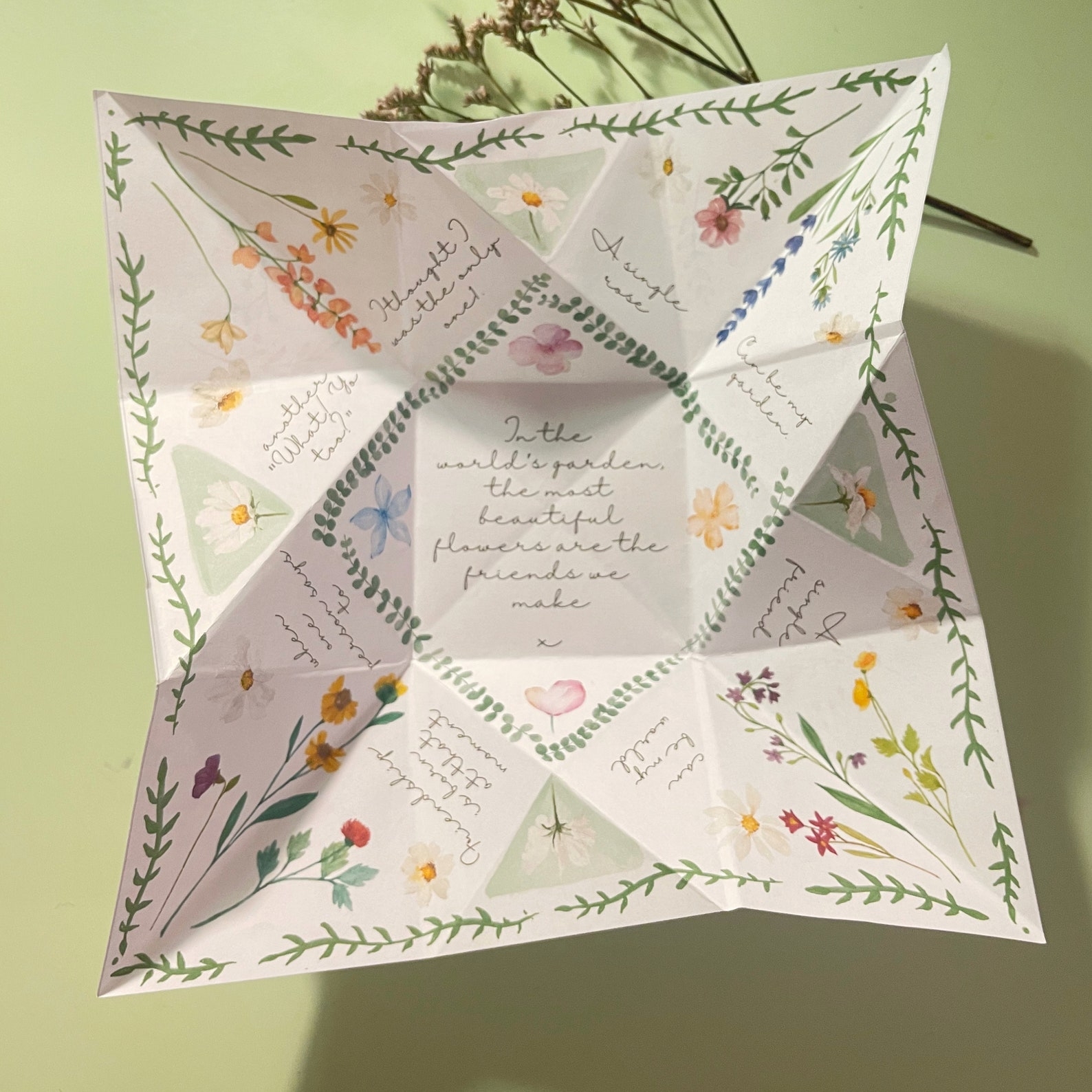 Once you have your diamond shape, carefully fold each of the four corners towards the center, creating a smaller diamond shape. This will be the base of your puzzle purse template. You can now decorate the outside of the purse with designs, patterns, or messages before unfolding the purse to reveal the hidden compartments inside.