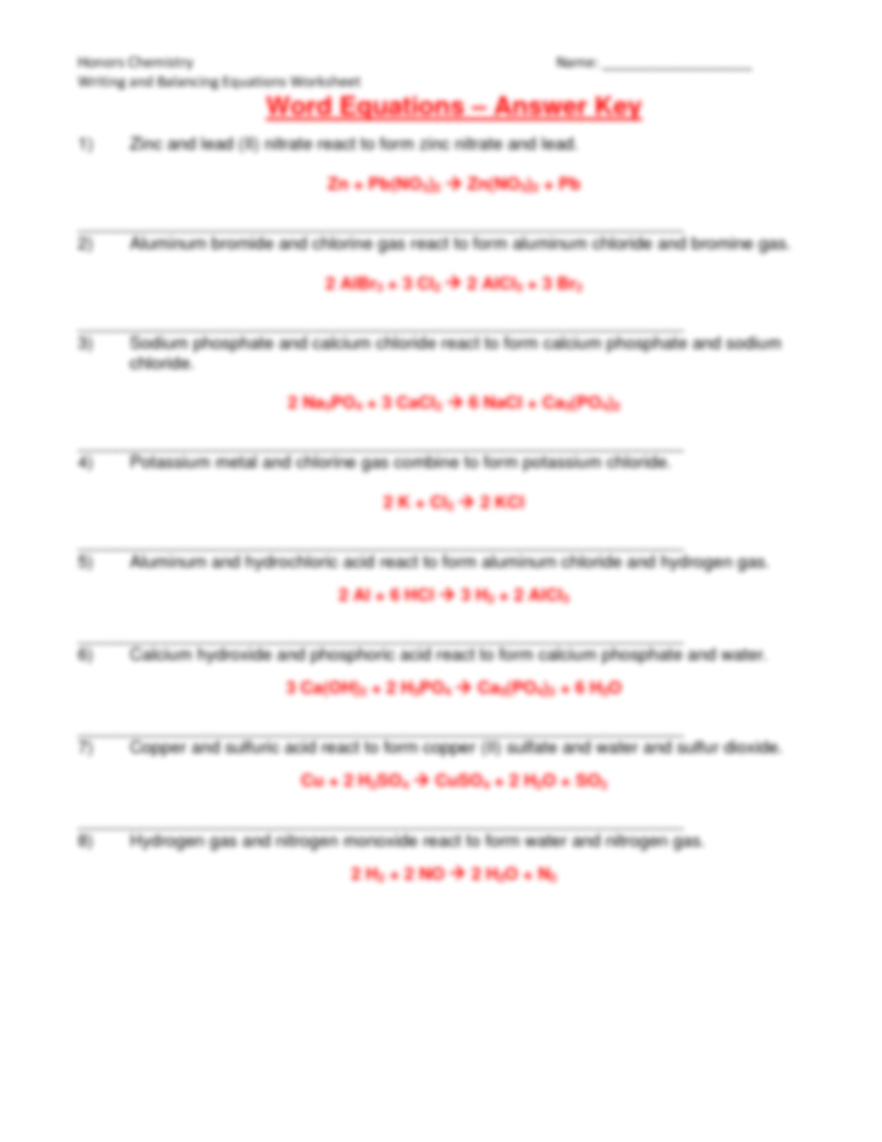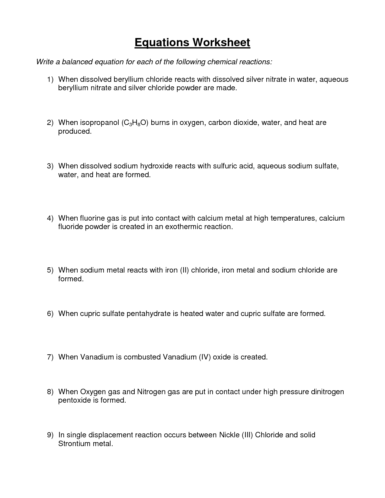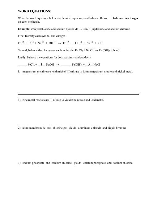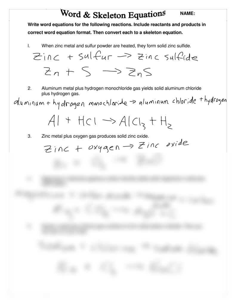 Word Equations Worksheet