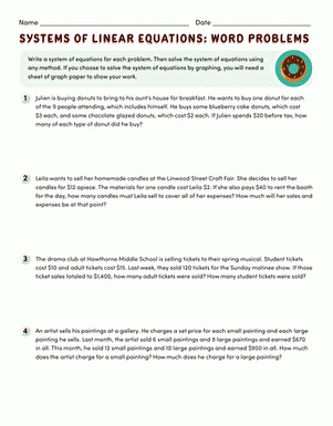 Word problems involving systems of equations can be challenging for students to solve. These types of problems require the use of multiple equations to find the values of unknown variables. One way to practice solving these problems is through worksheets that provide a variety of scenarios for students to work through.