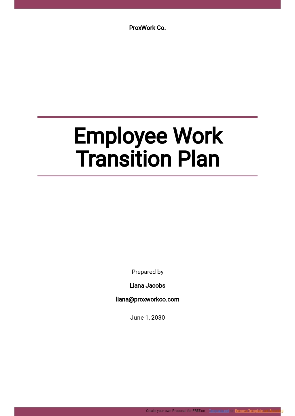 Here is a simple template that can be used to create a work transition plan: