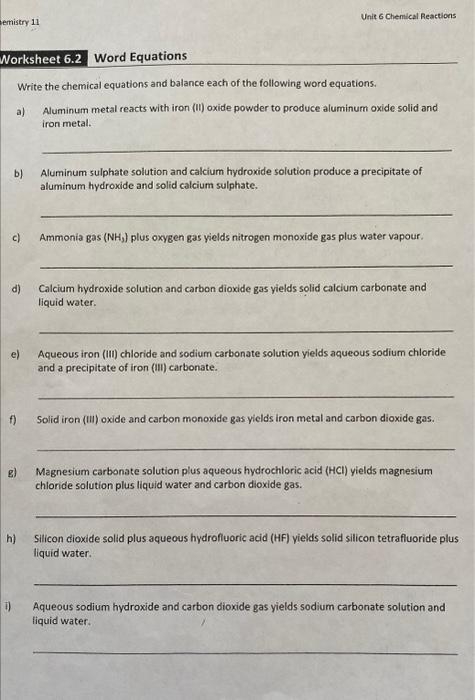 Worksheet 6.2 Word Equations is a valuable tool in the study of chemistry. Word equations help to represent chemical reactions in a clear and concise manner. By using words to describe the substances involved in a reaction, students can better understand the process and the changes that occur. This worksheet is designed to help students practice writing and balancing word equations, an essential skill in the field of chemistry.