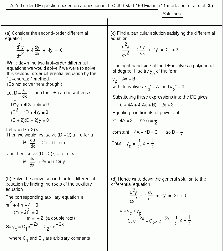 Differential Equations MATH100 Revision Exercises Resources