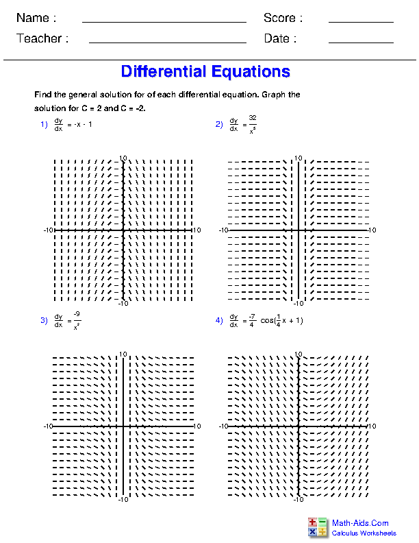 Worksheet On Differential Equations