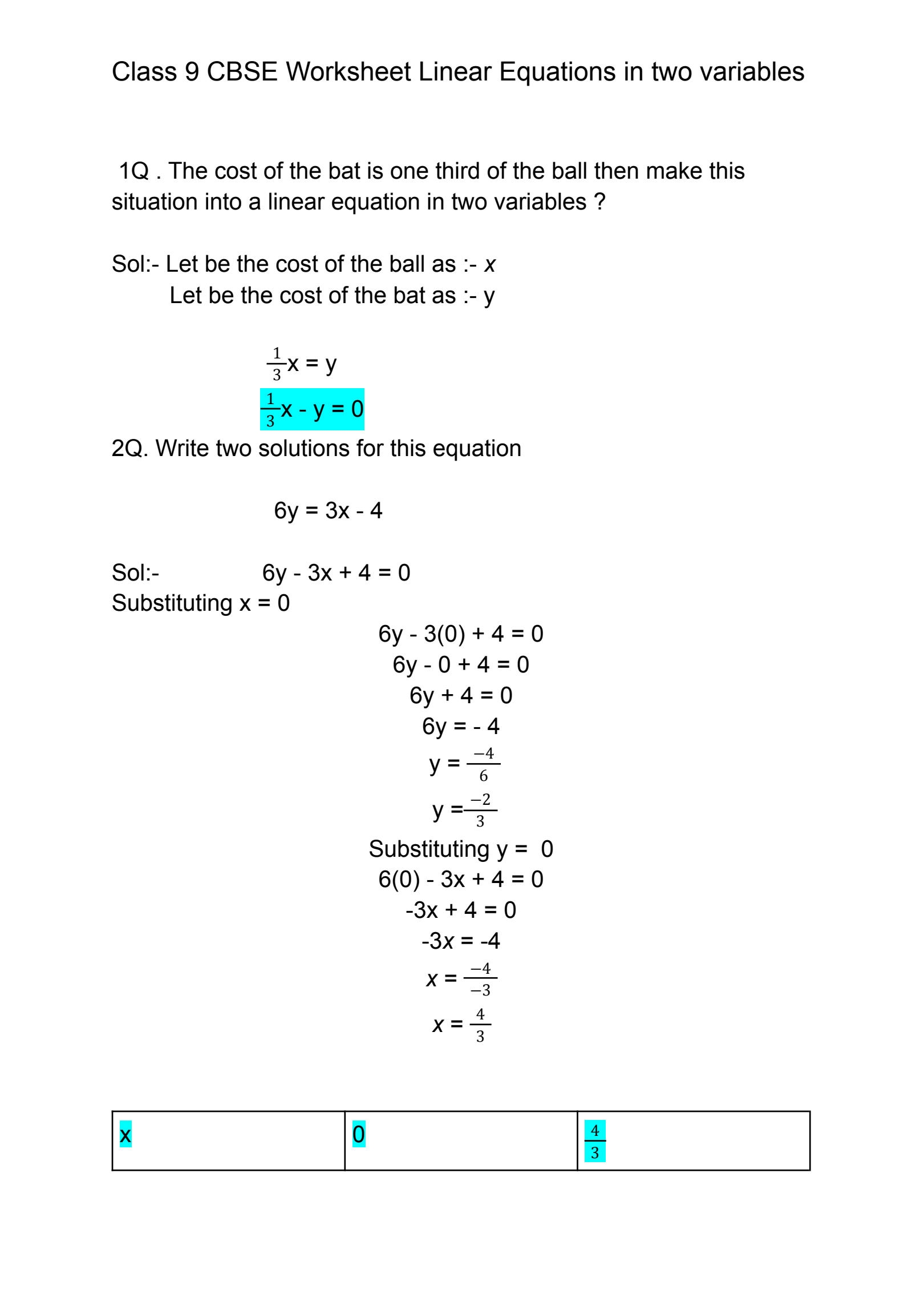 This worksheet on linear equations in two variables is designed to help students practice solving and graphing these types of equations. By working through the problems in this worksheet, students can develop a better understanding of how to manipulate and solve linear equations in two variables.