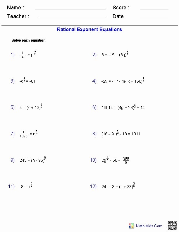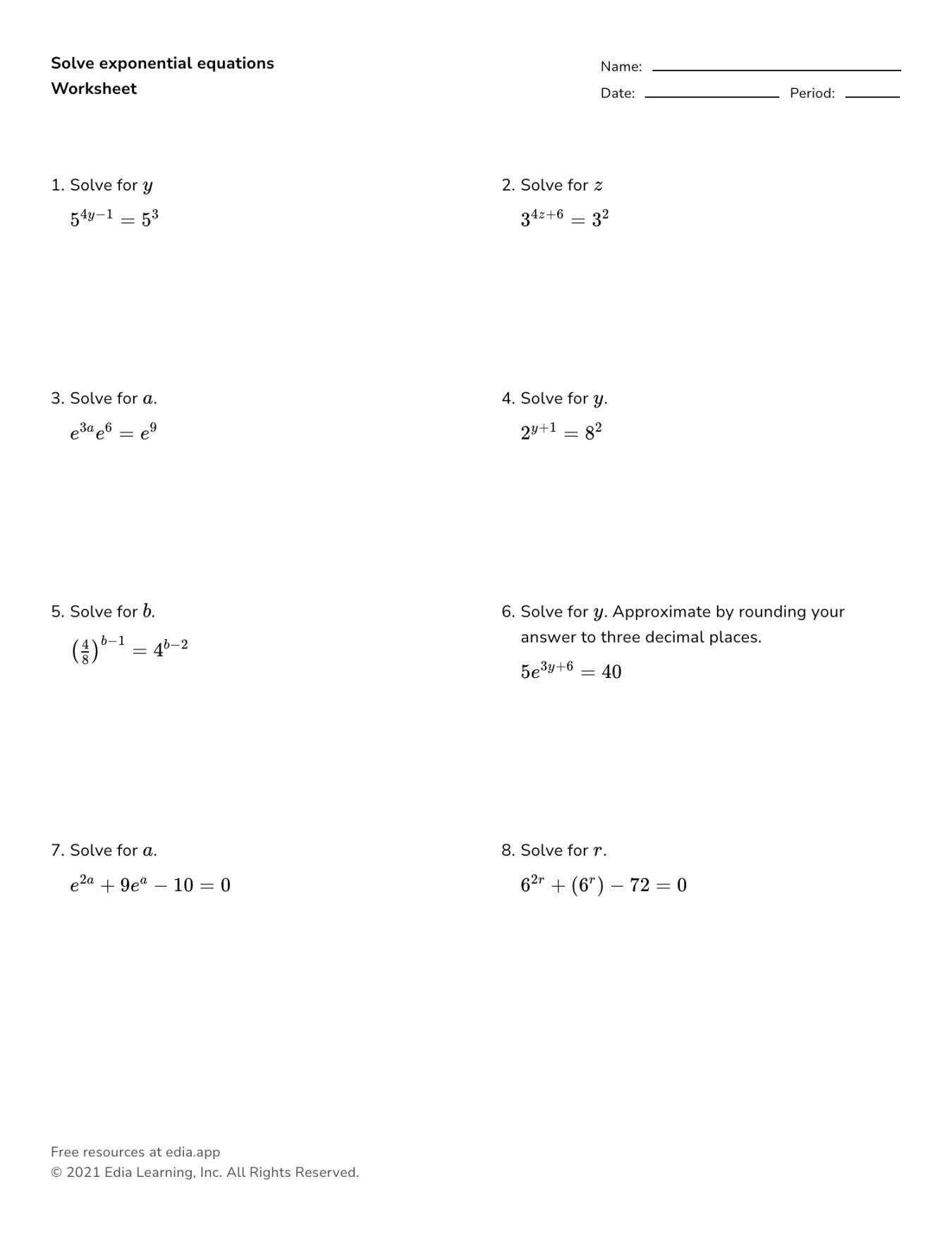 Worksheet Solving Exponential Equations