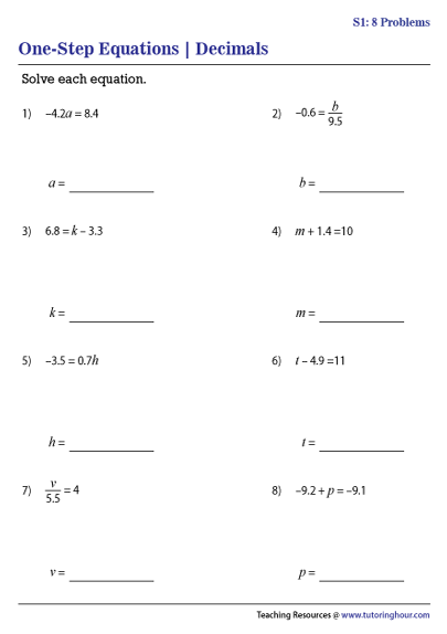Worksheet solving one step equations are a great way for students to practice and reinforce their understanding of this concept. These worksheets typically include a series of equations for students to solve, providing them with the opportunity to apply the rules they have learned in class.