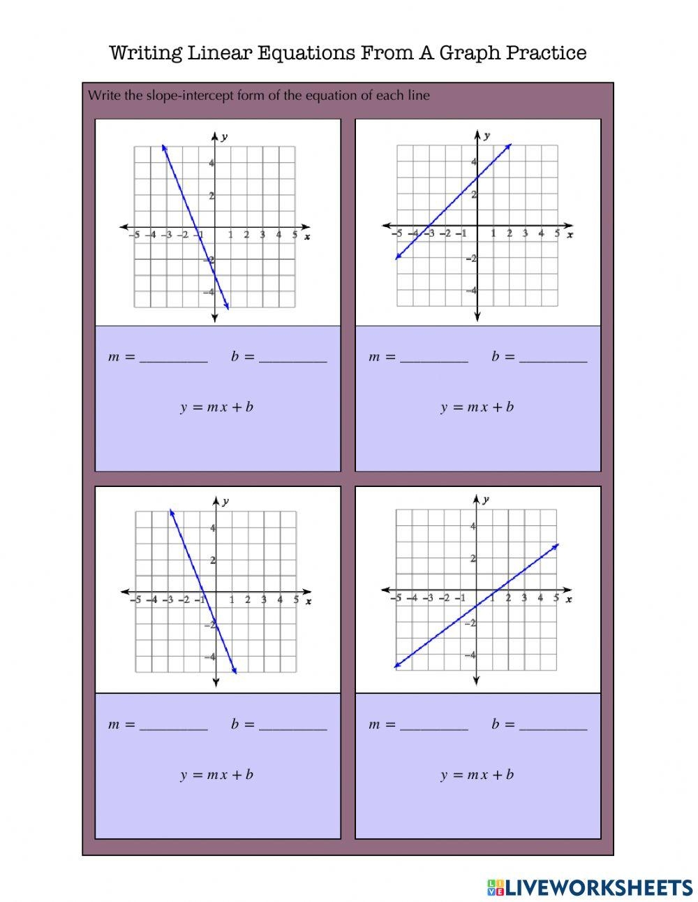 Writing an Equation from a Graph Worksheet