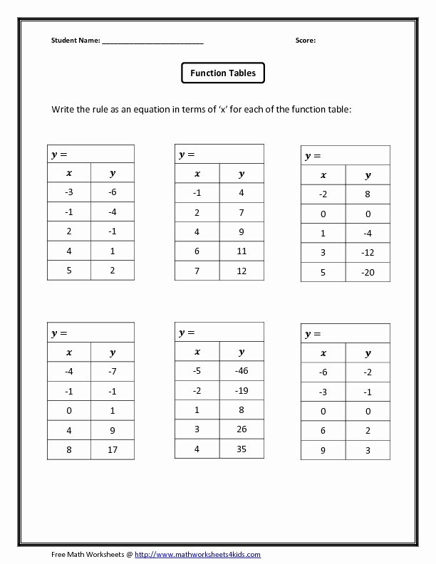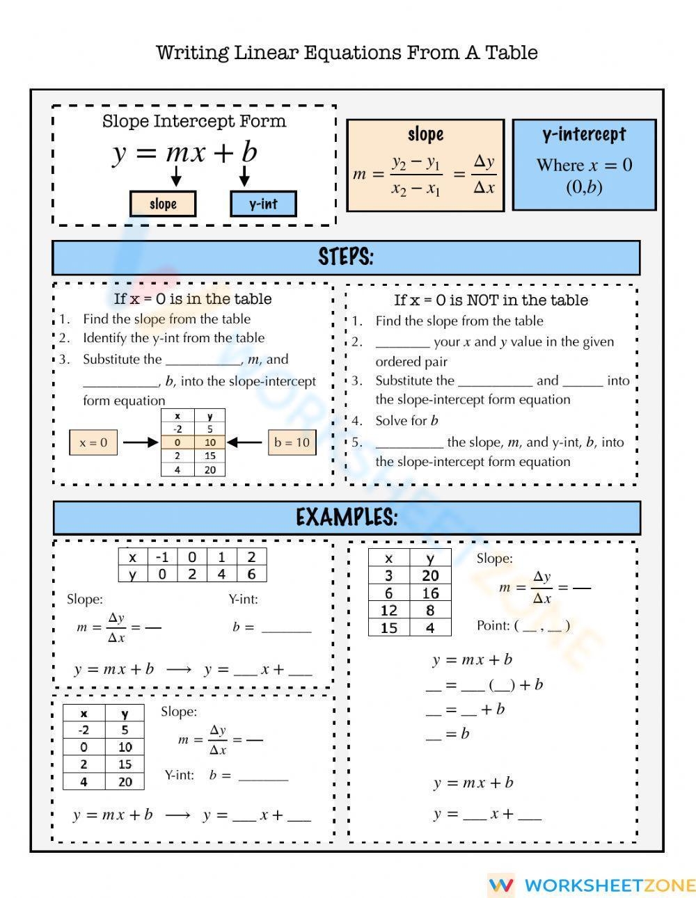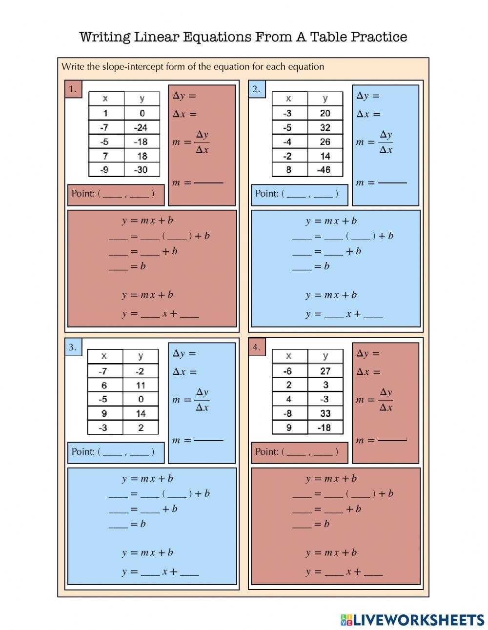 Writing Equations from a Table Worksheet