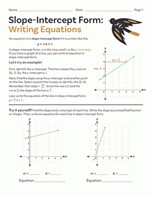 Download and Print writing equations in slope-intercept form worksheet Listed below