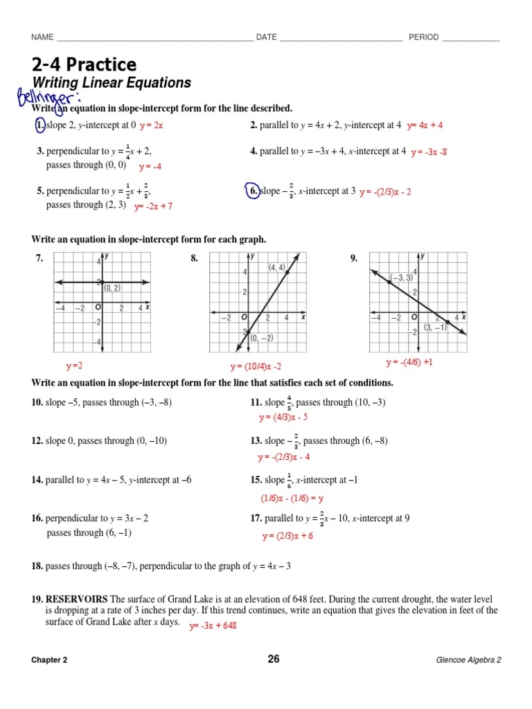 2 4 Writing Linear Equations Practice PDF Algebra Teaching